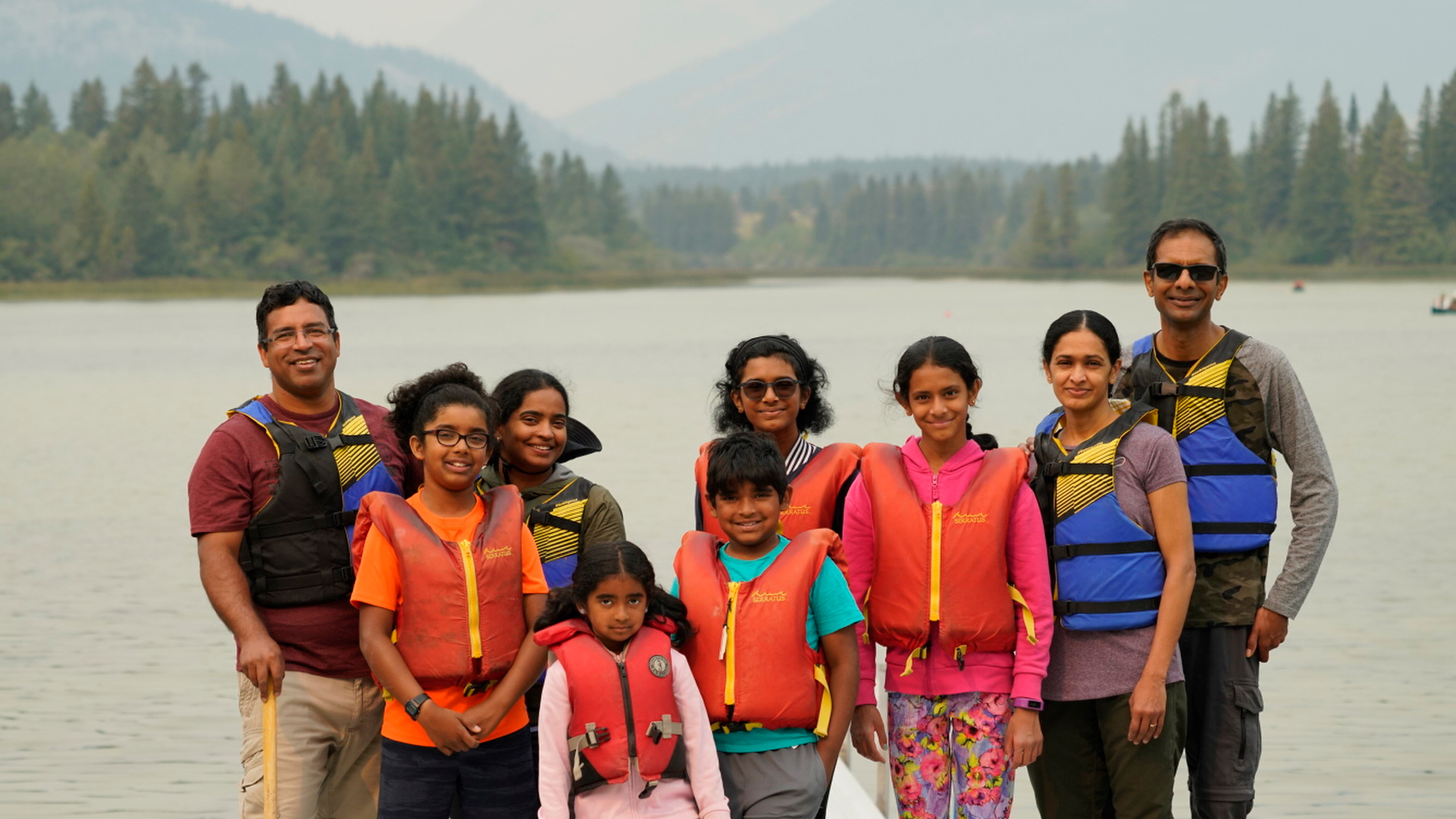 Family on canoe dock Family on canoe dock
