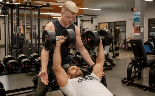 YFit - Certified trainer and client on weight floor YFit - Certified trainer and client on weight floor