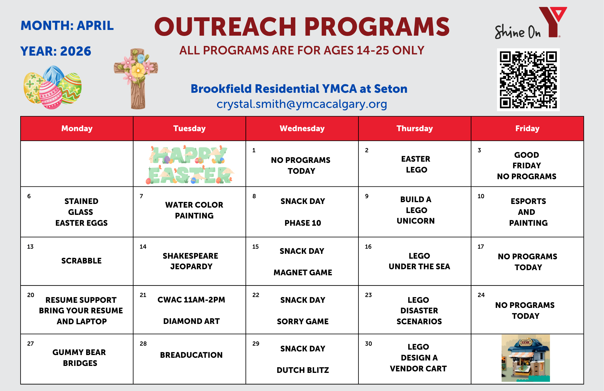 Click here for Shane Homes YMCA at Rocky Ridge's April Outreach Schedule.